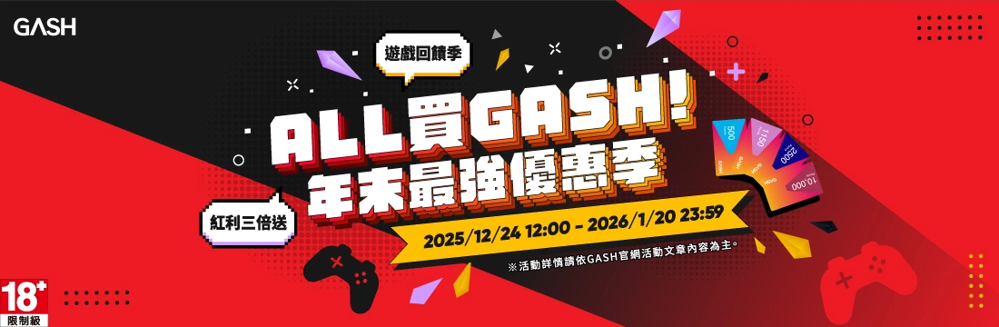 ALL 買 GASH!年末福利開打